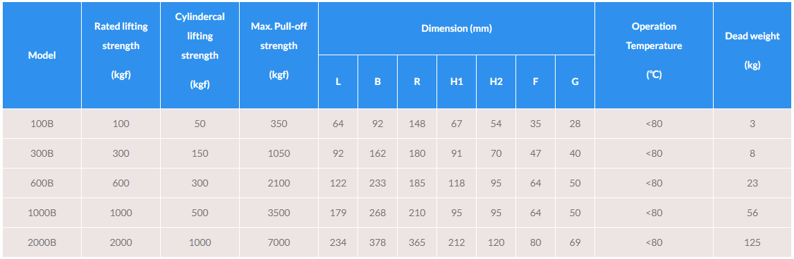 電磁升降機存在功耗大、發熱嚴重、磁滯現象、體積大、維護困難等問題。而永磁升降機結構緊湊,操作難度低,無功耗。永磁吊具的起重能力還取決于負載的材料、厚度、表面質量。