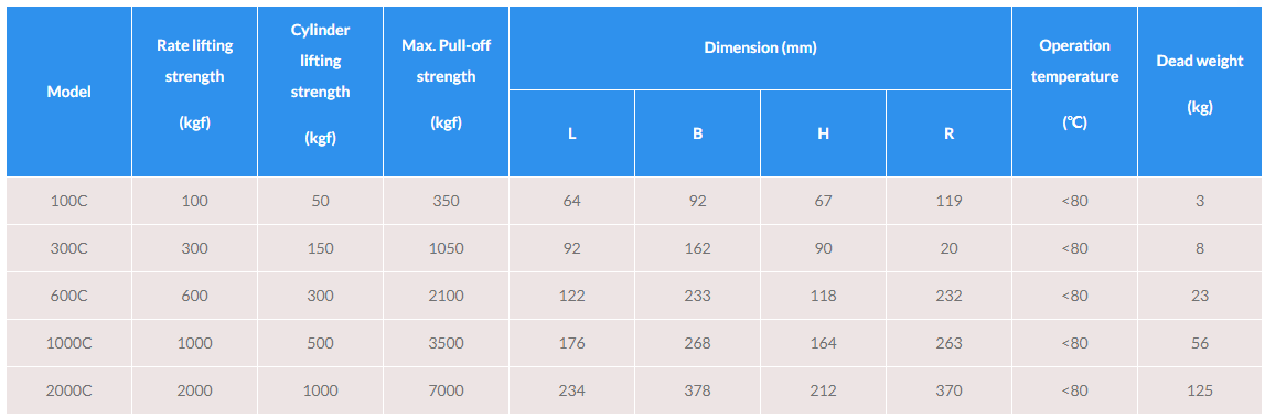 電磁升降機存在功耗大、發熱嚴重、磁滯現象、體積大、維護困難等問題。而永磁升降機結構緊湊,操作難度低,無功耗。永磁吊具的起重能力還取決于負載的材料、厚度、表面質量。